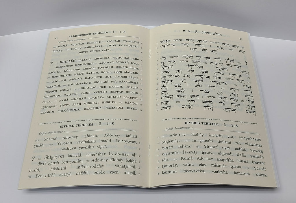 Divided Tehillim ~ Hebrew, English & Russian Booklets